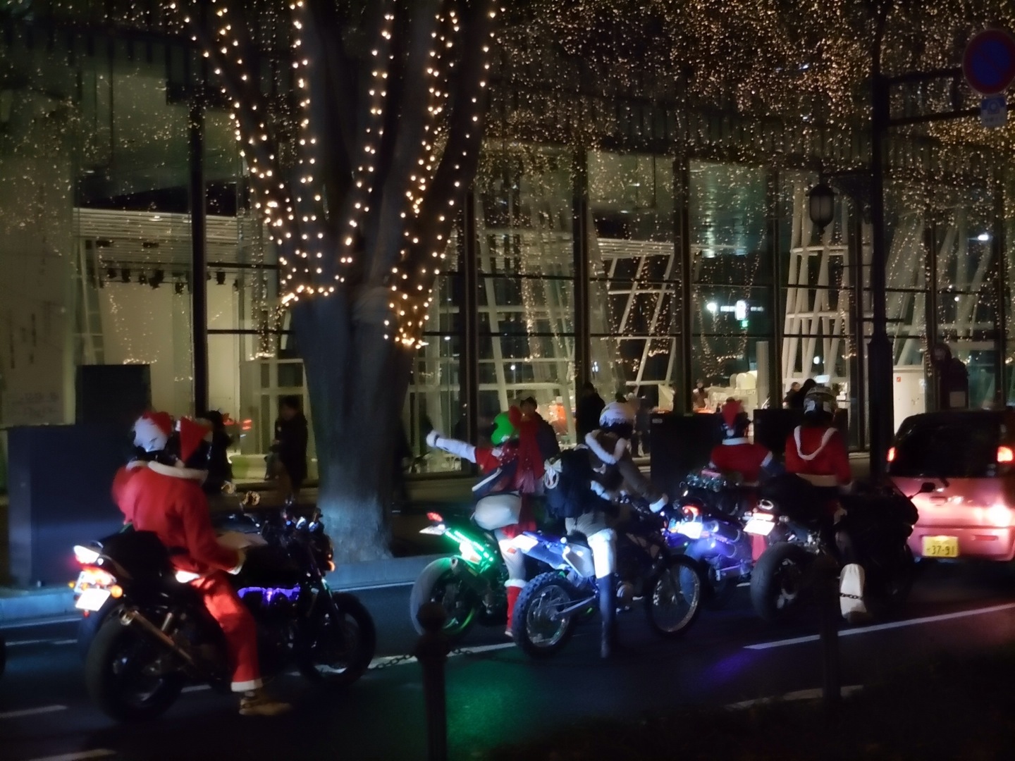 クリスマスですね〜〜〜 って我が家のイベント(?) 連休で終わってましてw 昨日も今日も地味な感じですが〜 いちお記録。 ケーキは最近同じお店 すっかり気に入ってる亘理のケーキ屋さん 今年は初めてチョコレートにしてみた☆ 30センチくらいありますw (言うまでもなく家族構成2人) さすがに一晩では無くならず(そりゃね) ケーキ受け取って ご飯 これまたいつものハンバーグ屋さんw クリスマスぽくコース仕立て デザートもあった〜 食べ過ぎ レクと称して ページェント ここ数年は混んでるし寒いし 車からだけだったのだが 今年はそれほど混んでなかったので 歩いてみた〜 先日買ったコンデジ まだ全然使いこなせてなくて 2ショット撮ろうとしたがうまくいかず(笑) ごちゃごちゃやってたら 本格的なカメラ持ったおにーさんに よろしかったら撮りましょうか? って声掛けられw ↑その様子がたまたま動画モードになってたコンデジに記録されてる(爆) 撮っていただきましたw さすがに綺麗に撮れてました♪ ご飯のときワイン少し飲んで若干暖まってたが さすがに30分が限界 メディアテークのすぐ北側の駐車場にとめれたので良かった とゆーか駐車場けっこう空いてた(笑) 盛り上がってたサンタ風ライダーさんたちw おまけ☆ PR まぁ