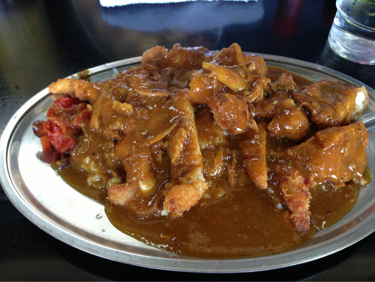 うまいこと時間合わせて甥をピックアップ(盛岡駅へ) ここ最近 すっかり習慣? 青森市に住む甥 帰省途中の我が家と盛岡で待ち合わせ (Dがメールで連絡してるのよね~懐いてるしw) ↑D実家(弘前)まで我が家の車に乗りたいがためだけに来るw 今回は 軽く鉄(これまたDと一緒w)の甥 こまち乗ったことないから って理由だけで秋田経由できた(笑) 大雨でやっと復旧したこまちね~ 46号通ってきたので線路見たけど、、、 凄まじい土砂崩れよ! よく3日で復旧させたよ! くらいな・・・ さすがに途中速度規制(なんと35km/h!) 地べた走る新幹線は違うわ~ 秋田ー盛岡間15分のディレイ おかげでのんびりちひろ展みれましたw 私達が前日秋田に泊まってたって言ったら じゃぁ秋田からでも良かったのに ってボソっと言ってたがw そしたら「こまち」乗れないじゃん~(笑) とゆーかよくわからない理由で秋田泊は親さまたちにはナイショにしたいD(ナゾ) ま、そんなわけで甥と一緒に盛岡w ちょうどお昼どきだったので 3人でランチ 狙いは ↓↓ 営業時間の短いw 若干幻のお店ww (このお店がやってなかったら冷麺だったはず。去年甥と行ったよね~) 盛岡に住む学生さんたちにはもはや伝説? 写真は私オーダー とりかつカレー(小) これで「小」w 甥はお初なのでどんな感じかわからないから~ って、かつカレー(中) 賢明だw Dは~ 果敢に(ムダw) かつカレー(大) 比較対照が無いので大きさよくわからないかもですが 「大」お皿は40センチ近いかもw ご飯は2合近い? そしてカツがね~~ なんか以前より多くない? ↑以前の「大」 洗面器のような器w この時は完食あんど私の残した分も食べたw 私は頑張ったけど1/3くらい残ってギブ 甥が食べてくれた(^ー^* ) Dは~ カツが多い~ やら言いながら攻めたが 残りほんの少しでギブw これまた甥に( ̄m ̄〃) なんか以前よりカツが多い~ って言ってたら 甥がボソっと サービスって言ってた って?! 座った場所の関係で カウンター越しに全てのカレーたちを受け取ってくれた甥 で、「大」のときサービスとかなんとか言われたらしー 想像。 ここ何年か年に1~2回くらい通ってる(Dと私) お店の方(おばちゃん)覚えててくれた?? で、今回お初の甥を連れ・・・ Dに激似の甥を息子とお思いに?! 「大」は息子(甥だけど)が食べると思って?! カツ、倍量??? なくはない・・・ 賢明に「中」オーダーの甥(食べ盛り) 私の残した分もDのムリだった分も キレイに食べてくれましたw 若いって素晴らしい(*≧m≦*) 難点は。。。 冷房が無いことっ!!! おひとりさま1こ って感じに目の前に団扇置いてあるけどw 30度超えエアコン無しでカレーはねぇε-(´o`;A 汗だくっすw もう少し涼しかったら もっとラクに食べれた~ って甥も言ってたw でも美味しかったって♪ イイ汗かきました(爆) が、夏には向かないこのお店w 「卒業」 は、 ここのお店の「大」w 卒業するってさD(*≧m≦*) 遅いわ~www